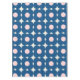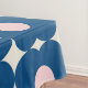 This stylish tablecloth features a cute retro geometric floral pattern in blue and pink.
