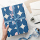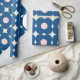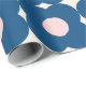 This stylish wrapping paper features a cute retro geometric floral pattern in blue and pink.