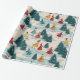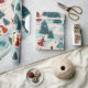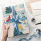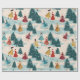 Mid-century girls in pretty dresses skating outdoors surrounded in winter wonderland with snowflakes and fir trees, for lovers of nostalgia and retro 1950s, best for the holiday season gift wrapping