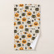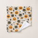 This design presents a cute and whimsical Halloween pattern filled with a delightful assortment of classic spooky icons. The background is a light cream colour, providing a soft contrast to the bold designs. The pattern includes playful jack-o'-lanterns with different expressions, black cats with bright yellow eyes, smiling skulls, and friendly bats with orange wings. Scattered throughout are spiders, crescent moons, stars, mushrooms, and magical symbols, all adding to the enchanting Halloween atmosphere. The colour palette features striking blacks, oranges, and yellows, creating a lively and festive design perfect for Halloween decorations, clothing, or party themes. The overall feel is fun and charming, ideal for celebrating the spooky season with a touch of sweetness.