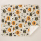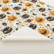 This design presents a cute and whimsical Halloween pattern filled with a delightful assortment of classic spooky icons. The background is a light cream colour, providing a soft contrast to the bold designs. The pattern includes playful jack-o'-lanterns with different expressions, black cats with bright yellow eyes, smiling skulls, and friendly bats with orange wings. Scattered throughout are spiders, crescent moons, stars, mushrooms, and magical symbols, all adding to the enchanting Halloween atmosphere. The colour palette features striking blacks, oranges, and yellows, creating a lively and festive design perfect for Halloween decorations, clothing, or party themes. The overall feel is fun and charming, ideal for celebrating the spooky season with a touch of sweetness.