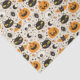 This design presents a cute and whimsical Halloween pattern filled with a delightful assortment of classic spooky icons. The background is a light cream colour, providing a soft contrast to the bold designs. The pattern includes playful jack-o'-lanterns with different expressions, black cats with bright yellow eyes, smiling skulls, and friendly bats with orange wings. Scattered throughout are spiders, crescent moons, stars, mushrooms, and magical symbols, all adding to the enchanting Halloween atmosphere. The colour palette features striking blacks, oranges, and yellows, creating a lively and festive design perfect for Halloween decorations, clothing, or party themes. The overall feel is fun and charming, ideal for celebrating the spooky season with a touch of sweetness.