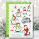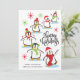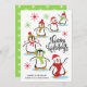 This cute retro style holiday card features happy playful penguins, the phrase "Happy Holidays" and is personalised with your name in the lower left corner. Back of card features a white snowflake pattern on a green background. This adorable holiday card is sure to bring a smile to family and friends!