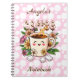 Cute Retro Kawaii Coffee and Flowers Personalised Notebook
