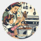 Cute Retro Mum and Daughter Baking Together Classic Round Sticker