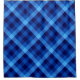 A shower curtain featuring a cool plaid pattern design in pretty ocean blue.
