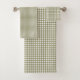 Cute Retro Olive Green Gingham Plaid Pattern Bath Towel Set
