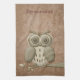 Pretty personalised kitchen towel (made in the USA) with a beautiful and cute retro brown owl sat on a branch on a vintage effect background. Another stylish, fun and trendy product from Groovy Graphics! Personalise or remove the text.