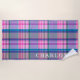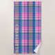 Personalised Cute Preppy Retro Plaid Pattern in Pink and Blue Beach Towel