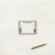 Add a some vintage sci-fi fun to your desk with this personalised pad. It features cute illustrations of retro style robots in shades of red and blue and is ready to be personalised with your own text at the top in navy blue lettering. The notes have a tan coloured frame with a beige coloured area for you to write your note.