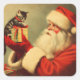 Cute Retro Santa with Kitten Illustration Square Sticker