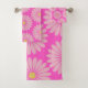 Cute Retro Scandinavian Flower Pattern in Pink Bath Towel Set