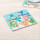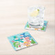 Five smiling snowmen on this paper drink coaster seem quite happy....and why not? It's getting close to Christmas, and the sky is filled with snowflakes! The hats and scarves in blue, green, gold and red brighten the scene, and one little snowman holds a small green Christmas tree. A fun retro Holiday image to brighten your home or party during the Holiday season.