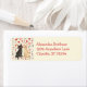 Two cute cats, one dark and one light-colored sit happily beside each other surrounded by hearts and flowers in a retro design.