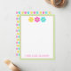 This retro inspired note card features a daisy pattern in bright shades of yellow, pink, blue and lime green. Personalize the front with your choice of name or special text.