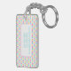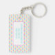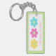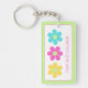 This retro inspired keychain features a daisy pattern in bright shades of yellow, pink, blue and lime green. Personalize the front with your choice of name and back with special text.