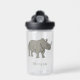 Cute Rhino Personalised Custom Name Back To School Water Bottle