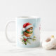 Enjoy some holiday magic with this cute Christmas mug featuring an adorable robin bird in a Santa hat. Perfect for kids or anyone wanting a dose of festive cuteness, this mug is great for hot cocoa, tea, or coffee during the winter season. A charming gift for friends or a delightful treat for yourself! Easily personalise this mug with your own text or leave it blank. - Kate Eden Art