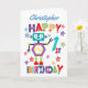 A special 1st birthday card! This bright fun first birthday card features a cute robot, some pretty stars and colorful text. A cute design for someone who will be one year old.