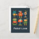 A cute adorable design of funny colourful robots. This cute children's illustration is perfect for a robot loving boy or girl. Robot love robot life theme. Playful children's fun.