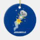 Cute robot flying in space cartoon illustration ceramic tree decoration