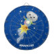 Cute robot flying in space cartoon illustration dartboard