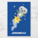 Cute robot flying in space cartoon illustration food label