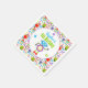 A cute and colourful robot themed napkin. Perfect for your kids birthday party. Features several bots in different colours. Can be personalised.