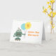 Send your birthday wishes to the birthday boy with this cute greeting postcard which has a cartoon of a happy green robot on wheels. The robot is holding on to blue and yellow balloons. Dots pattern for border decorations. Colourful and adorable design for kids who love science fiction or robot toys!