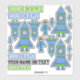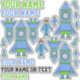 Cute Rocket Astronaut Blue Green Drawing Kids Sticker. Various stickers of a rocket ship, astronaut and the name or text - customise the stickers with your name or any text.