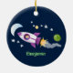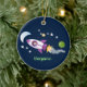 Cute rocket ship in space cartoon illustration ceramic tree decoration
