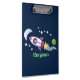 Explore space with this cute design featuring a boy in a rocket ship drawn in fun cartoon illustration style!