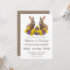 Amaze your guests with this elegant wedding invitation featuring cute rabbits with modern typography against a white background. Simply add your event details on this easy-to-use template to make it a one-of-a-kind invitation. Flip the card over to reveal a brown and white stripes pattern on the back of the card.