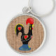 Cute Rooster Barcelos Portugal Burlap background Key Ring