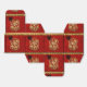 In a square are 2 roosters, one staying on a golden shape inside of which is the second rooster. Behind the scene there is a red background on which decorative and ornate letters form the words: "roos ter year". Favour box for Fire Rooster Year 2017 or birthday (Chinese zodiac).------------------ Don't forget the "Paper Cutting Collection".