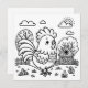 Cute rooster on a farm colouring card. Cute adult colouring poster for kids, teens or adults, Simple thick lines to make colouring easier.