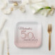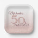 Cute Rose Gold 50 Fabulous Name 50th Birthday Paper Plate
