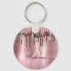 Cute Rose gold Brown Glitter Drips monogram Key Ring