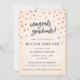 These super chic, feminine graduation announcements feature rose gold polka dots, grey hand-lettered text and a soft buff watercolor background.