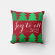 This cute pillow features two rows of assorted green trees and a festive holiday greeting of joy to all with year.