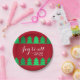 This cute paper plate features two rows of assorted green trees and a festive holiday greeting of joy to all with year.