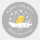 Adorable duck surrounded by bubbles set on a dark grey background for a neutral baby shower. Flip our sweet design over to view a coordinating duck back for an extra special touch. Visit our shop to view matching shower items.