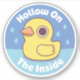 A doodle of a cute rubber duck with a double meaning sad caption that reads "Hollow On The Inside".