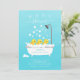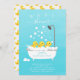 Adorable ducks in a bath tub with shower head set on a blue background for a triplets baby shower. Flip our sweet invitation over to view a coordinating duck back for an extra special touch. Visit our shop to view matching shower items. This invitation is also available for twins & triplets!