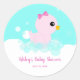 Cute Rubber Ducky Baby Girls Classic Round Sticker for envelopes and party favour seals. Personalise using our easy template.