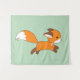 Cute little cartoon fox kit with large ears and bushy tail is running fast.