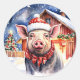 Cute Rustic Christmas Pig and Barn Large Classic Round Sticker