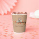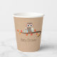 Rustic craft paper looking baby shower paper cup, with cute graphics of a little colourful owl and a larger owl sitting on a branch. Brown custom text reads Baby Shower and can be personalised to read what you want. Matching baby shower products are available.