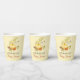 Sweet baby shower paper cups with soft autumn colours and a pretty watercolor pumpkin with botanical accents and a white polka dot background, these yellow paper cups for baby shower are perfect for the Fall and Winter baby shower or baby sprinkle. Personalise with your first name and the date of your event.