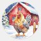 Cute Rustic Rooster Farm Themed Christmas Classic Round Sticker
